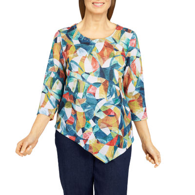 Alfred Dunner Lake Placid Womens Crew Neck 3 4 Sleeve T Shirt Color Navy Multi Jcpenney